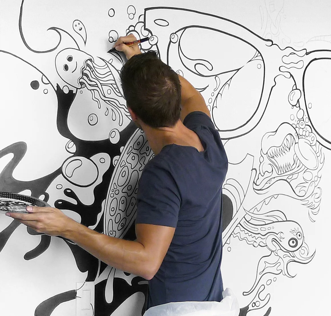 Originally from Portugal, Sebastian Bettencourt has been passionate about illustration since childhood. His art blends an ensemble of free-flowing lines and textured shapes with somewhat dark, sexual, and occasionally grotesque expressions — an homage to the cosmic balance of the bizarre and the beautiful.